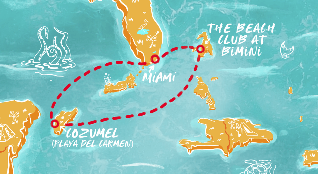 The Riviera Maya is a dreamer’s gateway to Cozumel (Playa del Carmen) and Tulum. Arriving from Miami and departing late with an additional day and night spent at The Beach Club at Bimini, you’ll have plenty of time to see each port from every sun and moonlit angle.